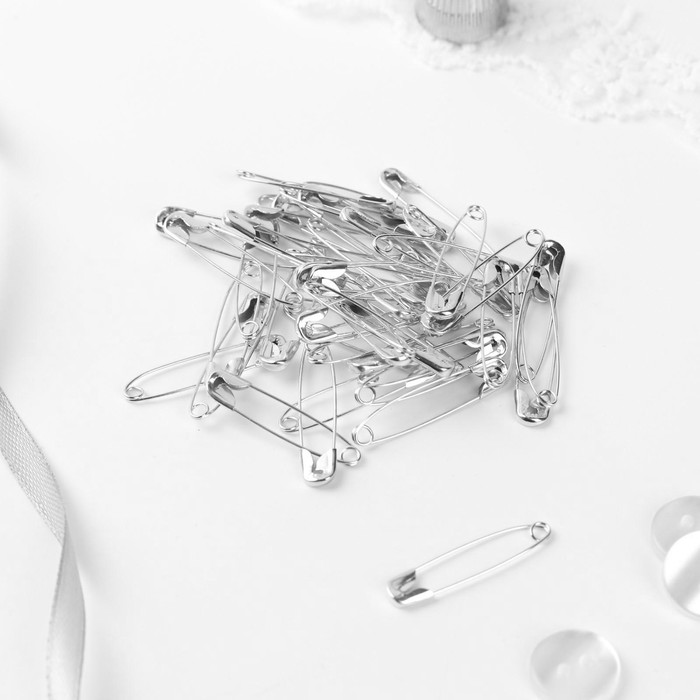 Булавки английские, 32×5 мм, 50 шт., цвет серебряный