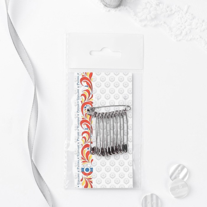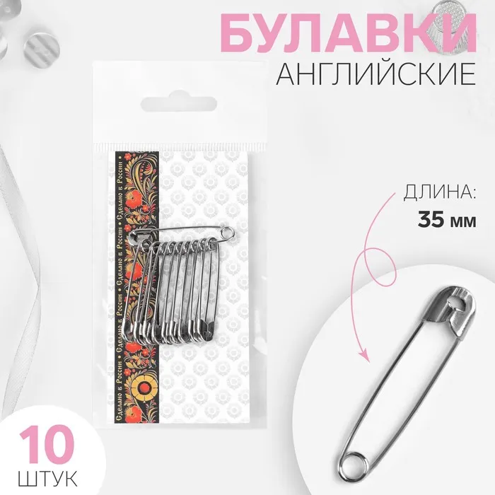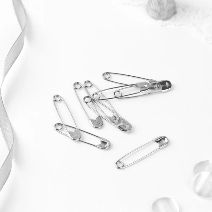 Английская булавка — универсальный помощник в быту, при шитье и рукоделии. Она пригодится для закалывания материала, драпировки ткани, создания украшений. С ней вы можете прикрепить к одежде или домашнему текстилю мягкие аксессуары. Острый край булавки прячется в безопасную петельку, она не уколет и прослужит вам очень долго.