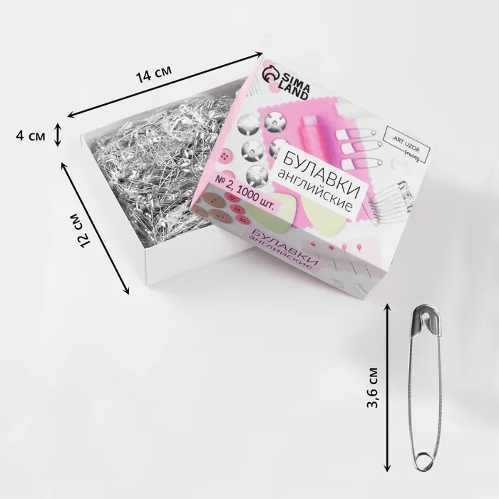 Английская булавка — универсальный помощник в быту, при шитье и рукоделии. Она пригодится для закалывания материала, драпировки ткани, создания украшений. С ней вы можете прикрепить к одежде или домашнему текстилю мягкие аксессуары. Острый край булавки прячется в безопасную петельку, она не уколет и прослужит вам долго.
