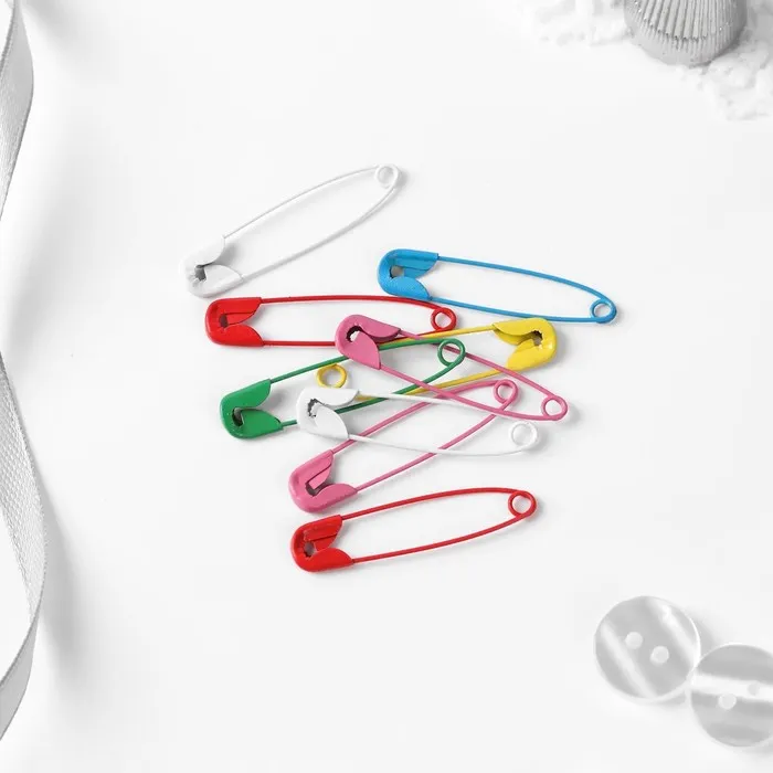 Английская булавка — универсальный помощник в быту, при шитье и рукоделии. Она пригодится для закалывания материала, драпировки ткани, создания украшений. С ней вы можете прикрепить к одежде или домашнему текстилю мягкие аксессуары. Острый край булавки прячется в безопасную петельку, она не уколет и прослужит вам долго.