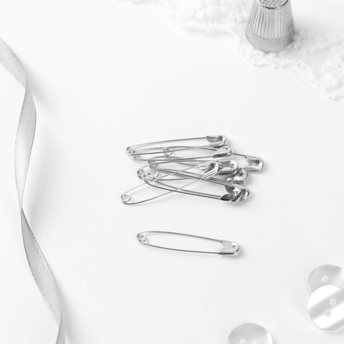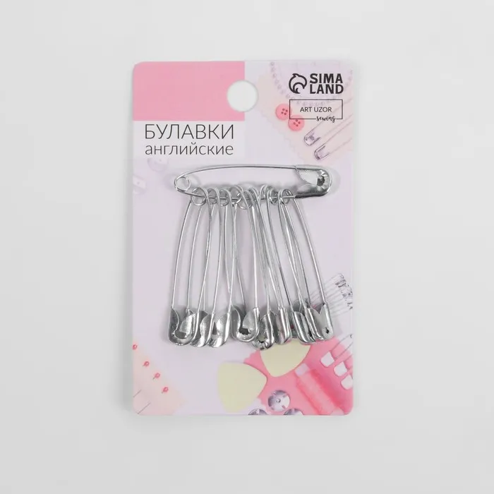 Английская булавка — универсальный помощник в быту, при шитье и рукоделии. Она пригодится для закалывания материала, драпировки ткани, создания украшений. С ней вы можете прикрепить к одежде или домашнему текстилю мягкие аксессуары. Острый край булавки прячется в безопасную петельку, она не уколет и прослужит вам долго.