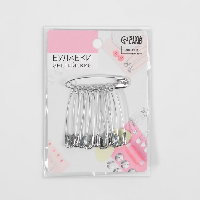 Булавки английские, 45 мм, 10 шт., цвет серебряный