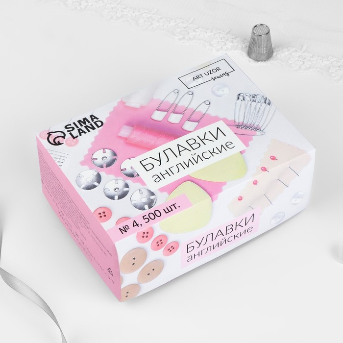 Булавки английские, 50 мм, 500 шт., цвет серебряный