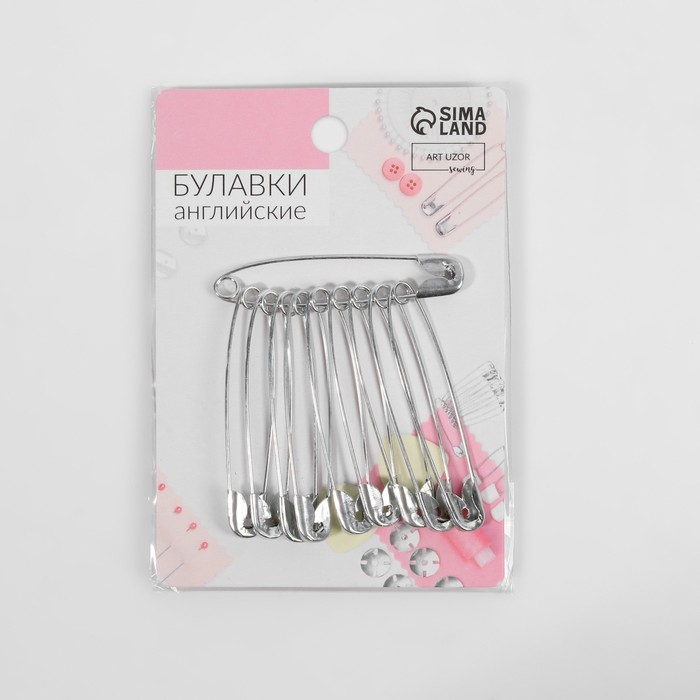 Булавки английские, 51 мм, 10 шт., цвет серебряный