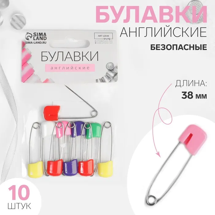 Английские булавки с пластиковыми колпачками станут отличным решением для фиксации постельного белья и одежды: их безопасное использование обеспечит массивный верх, а надежная конструкция облегчит вдевание резинки в пояс, продевания шнура в кулиску верхней одежды и многого другого.