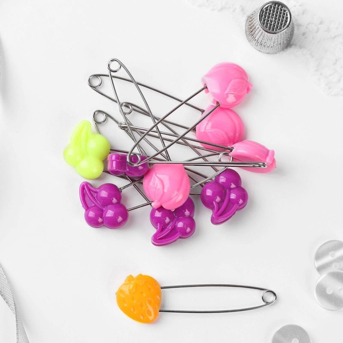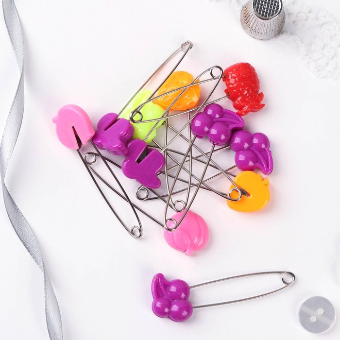 Традиционные английские булавки дополнены защитным колпачком, который выполнен в виде веселых зверят. Разноцветные вещицы придадут вещам оригинальный вид и продлят их срок службы, а привлекательная цена булавок станет еще одним подспорьем для покупки.