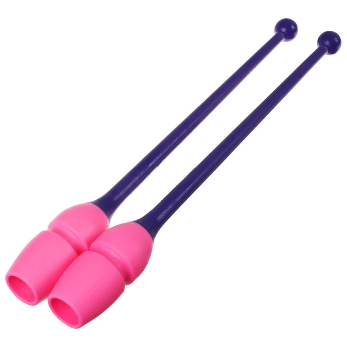 Гимнастические булавы предназначены для выполнения оригинальных и красивых элементов. Они имеют нескользящее покрытие для надёжного хвата. Одна булава легко вставляется в другую, что позволяет выполнять сложные броски. Яркий цвет инвентаря дополнит образ юной спортсменки.