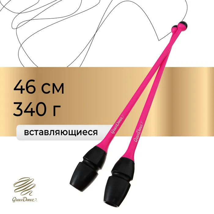 Булавы для художественной гимнастики вставляющиеся Grace Dance, 46 см, цвет розовый/чёрный — Характеристики