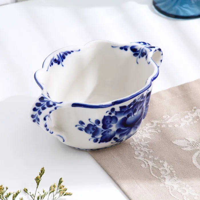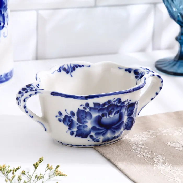 Бульонница «Ивушка», с ручками, H=7 см, 0,35 л, гжель — Характеристики
