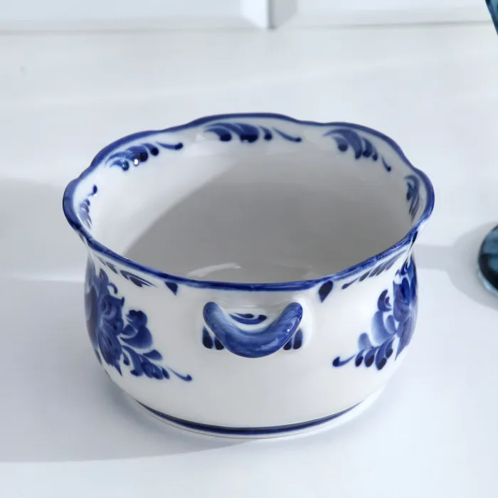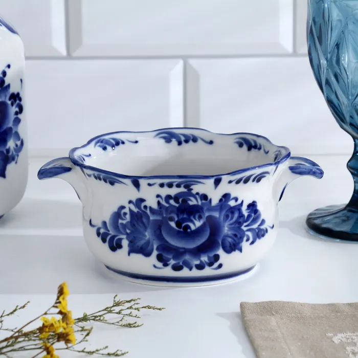 Бульонница с ручками «Рябинушка» H=7 см, 0.45 л, фарфор, гжель — Характеристики