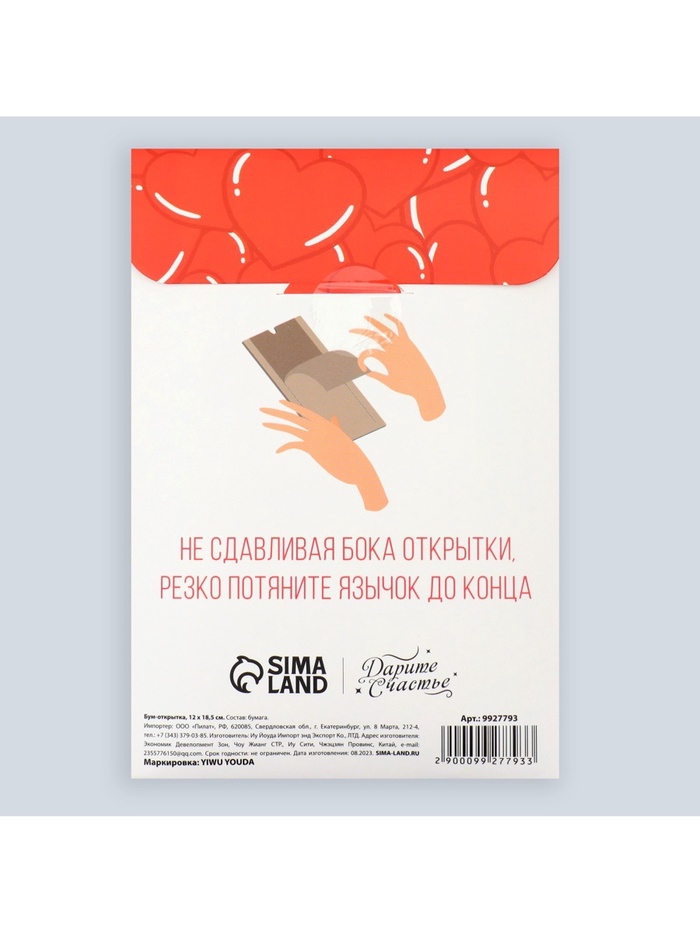 Бум-открытка «Влюблённый кот», 12×18.5 см — Характеристики