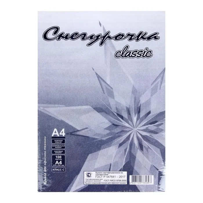 Бумага А4, 100 листов "Снегурочка" эконом, 80г/м2, белизна 146% CIE, класс С, в т/у плёнке (цена за 100 листов) — Характеристики