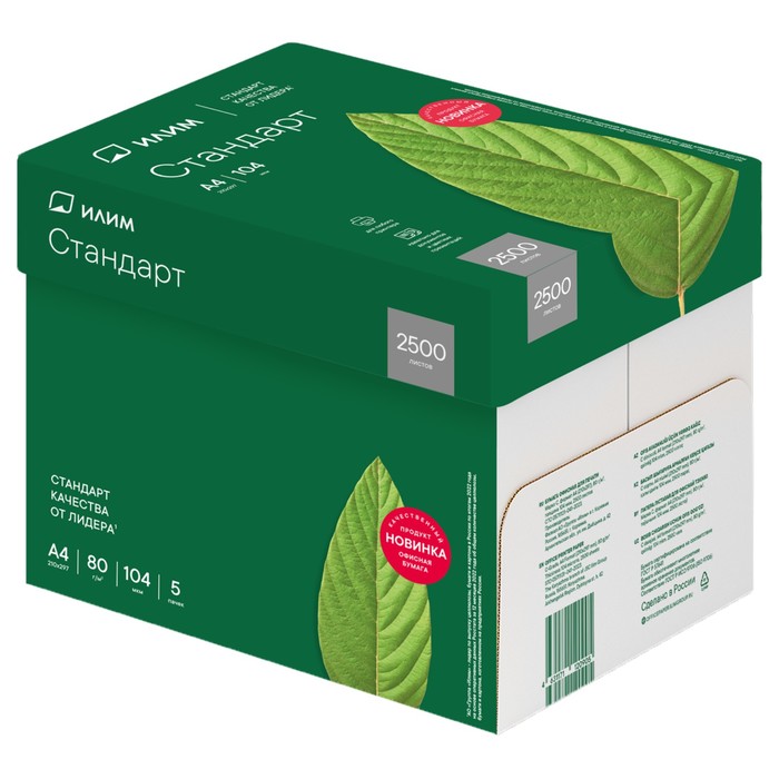 Бумага А4 500л, Илим "Стандарт", 80 г/м2, белизна 146% CIE, класс C (цена за 500 листов) — Характеристики