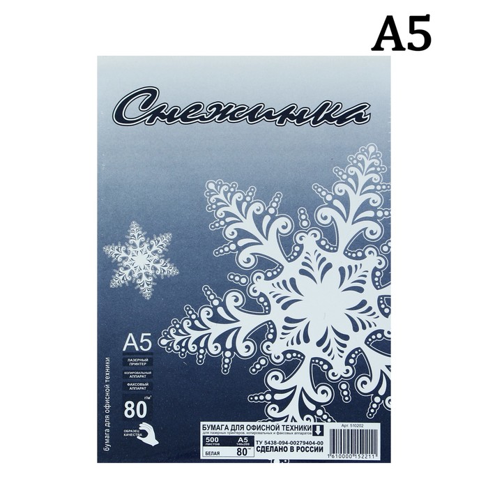 Бумага А5 500 листов "Снежинка" класс С, блок 80г/м ², белизна 146% (цена за 500 листов) — Характеристики