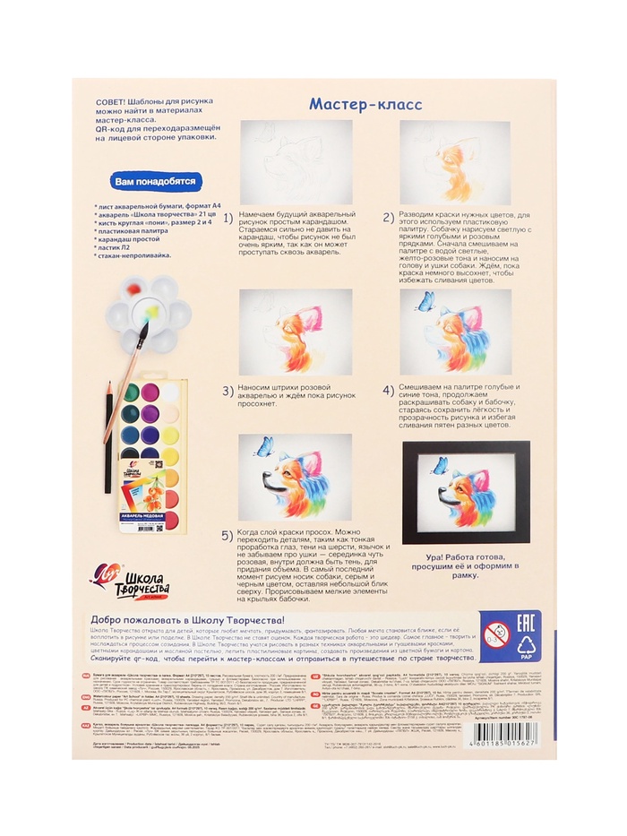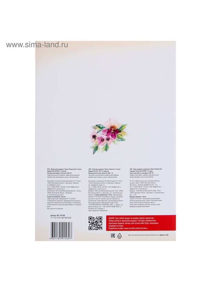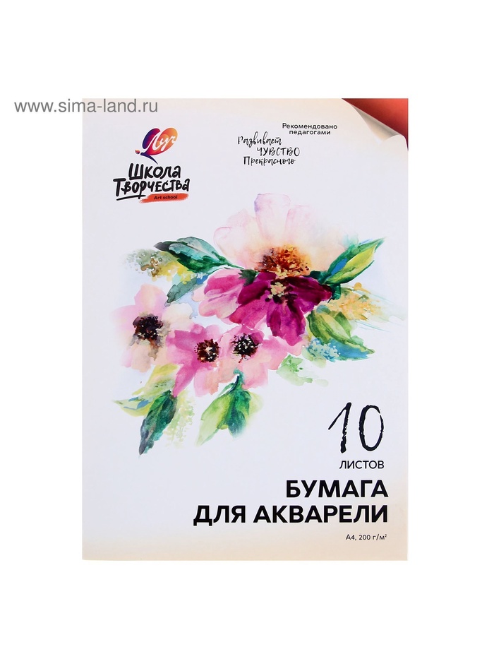 Бумага для акварели "Школа творчества" прекрасно подойдет для профессионалов, а также любителей акварельной живописи. Бумага идеальна для рисования акварелью, гуашью, древесным углем, цветными карандашами и чернилами. Изделие формата А4 (210х297 мм) содержит 10 листов плотностью 200 г/м2. Листы для удобства не скреплены, а хранятся в папке на два клапана из высококачественного мелованного картона плотностью 230 г/м2.