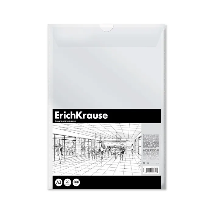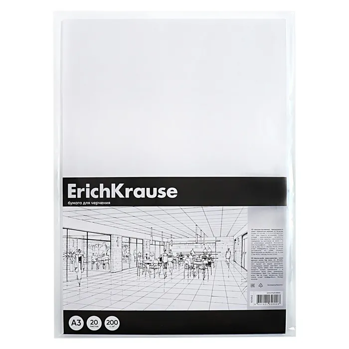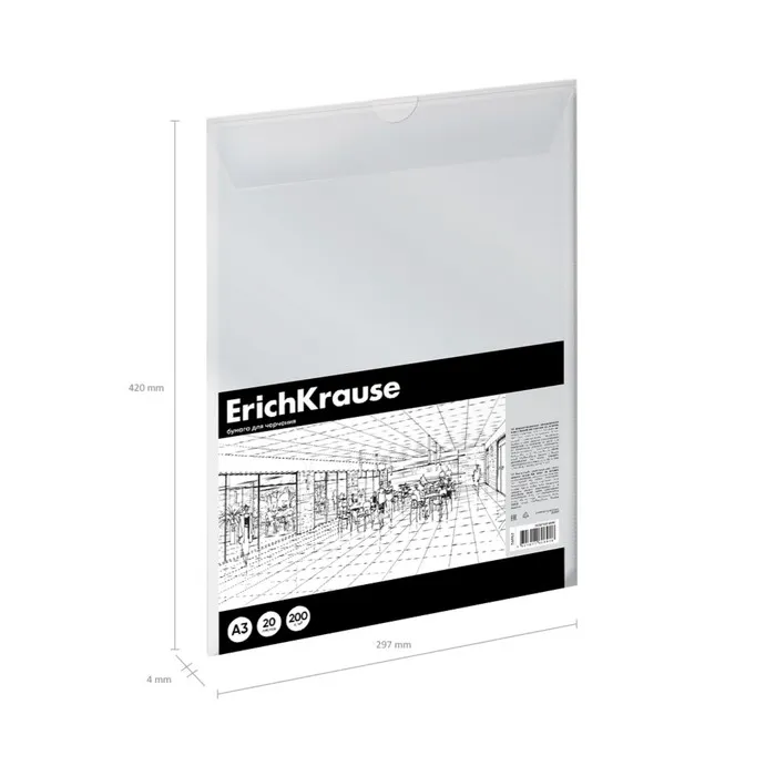 Бумага для черчения А3, 20 листов, блок 200 г/м², ErichKrause "Art", без рамки, в пластиковой папке — Характеристики