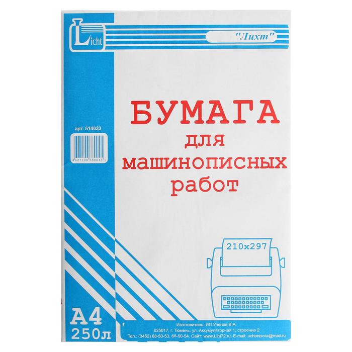 Бумага для машинописных работ А4, 250 листов, газетная, серая, гофрокороб — Характеристики