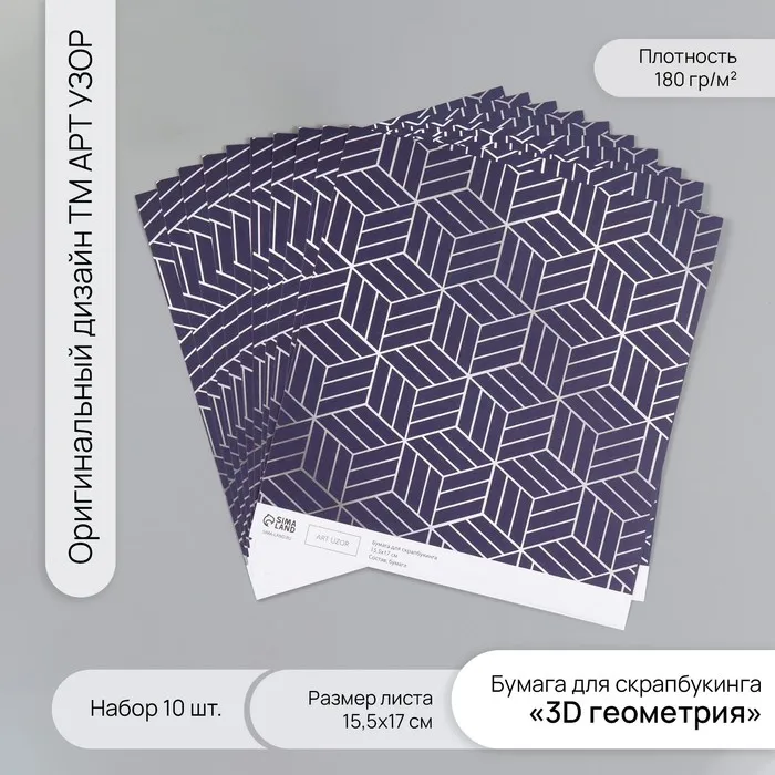 Бумага для скрапбукинга «3D геометрия», плотность 180 г, набор 10 шт., 15.5×17 см — Характеристики