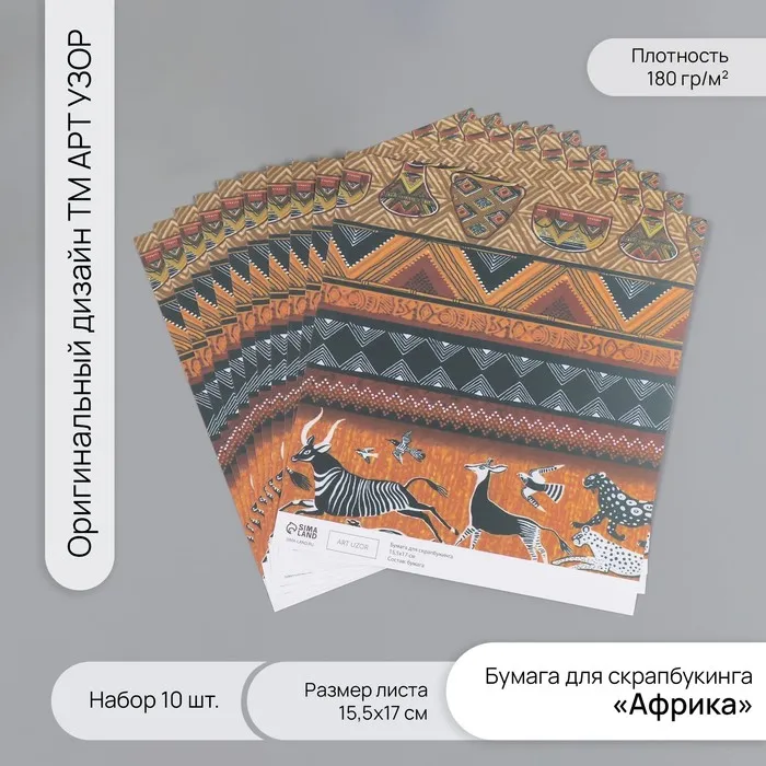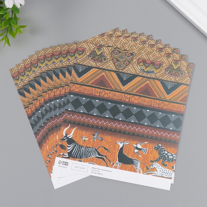 Бумага для скрапбукинга «Африка», плотность 180 г, набор 10 шт., 15.5×17 см — Характеристики