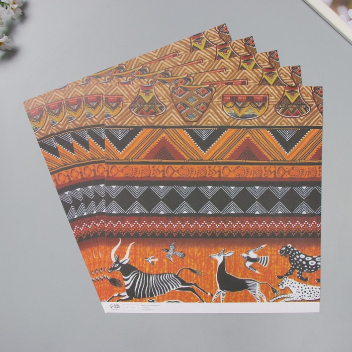 Бумага для скрапбукинга «Африка», плотность 180 г, набор 5 шт., 30.5×32 см — Характеристики