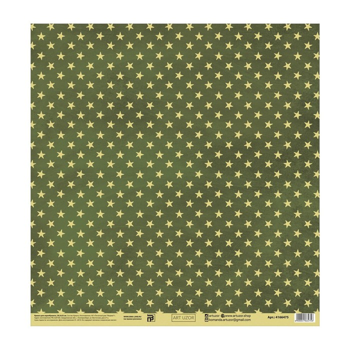 Бумага для скрапбукинга «Армейские звёзды», 30.5×32 см, 190 г/м² — Характеристики
