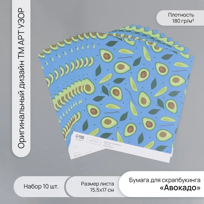 Бумага для скрапбукинга «Авокадо», плотность 180 г, набор 10 шт., 15.5×17 см — Характеристики