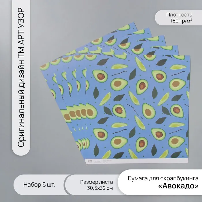 Бумага для скрапбукинга «Авокадо», плотность 180 г, набор 5 шт., 30.5×32 см — Характеристики