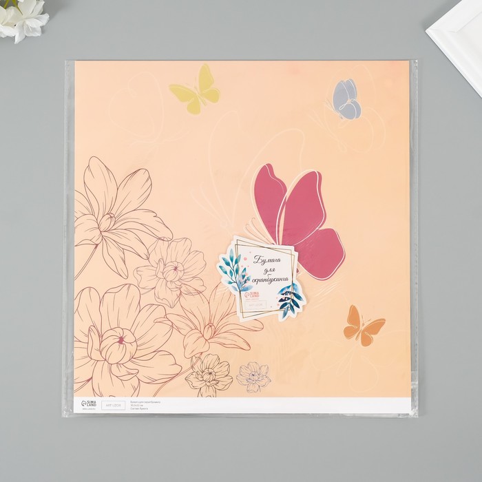Бумага для скрапбукинга «Бабочки с цветами», плотность 180 г, набор 5 шт., 30.5×32 см — Характеристики