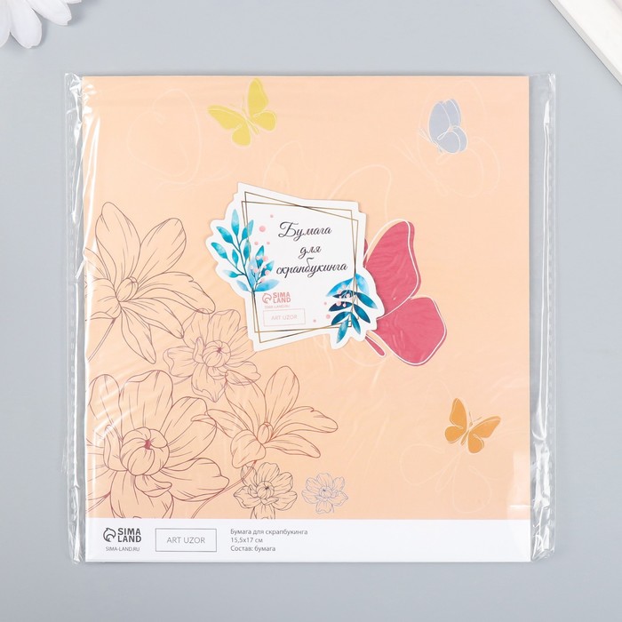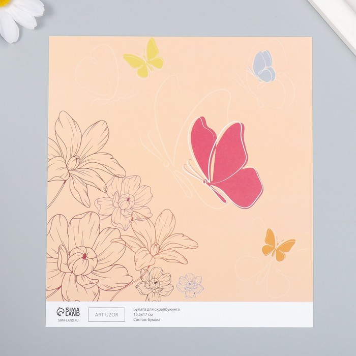 Бумага для скрапбукинга "Бабочки с цветами" плотность 180 гр 15,5х17 см — Характеристики