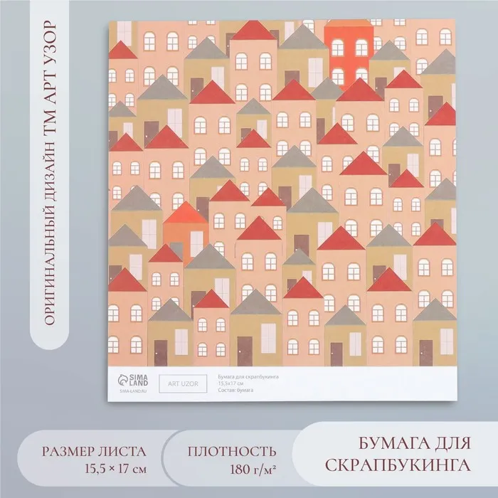 Бумага для скрапбукинга «Домики», плотность 180 г, 15.5×17 см — Характеристики