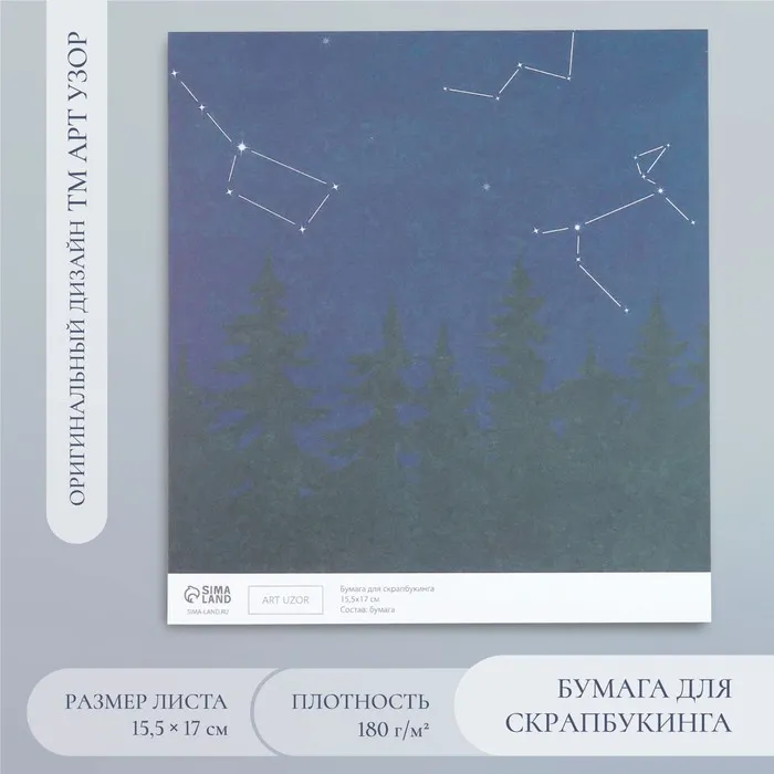 Бумага для скрапбукинга «Доверься звёздам», плотность 180 г, 15.5×17 см — Характеристики