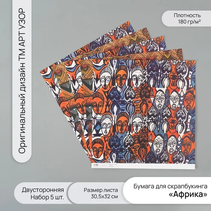 Бумага для скрапбукинга двусторонняя «Африка», плотность 180 г, набор 5 шт., 30.5×32 см — Характеристики