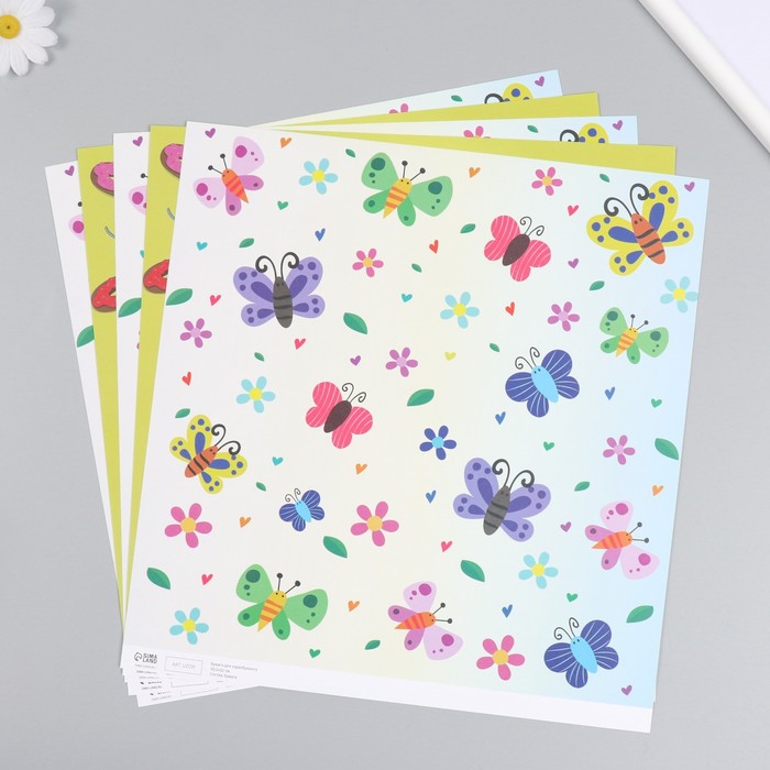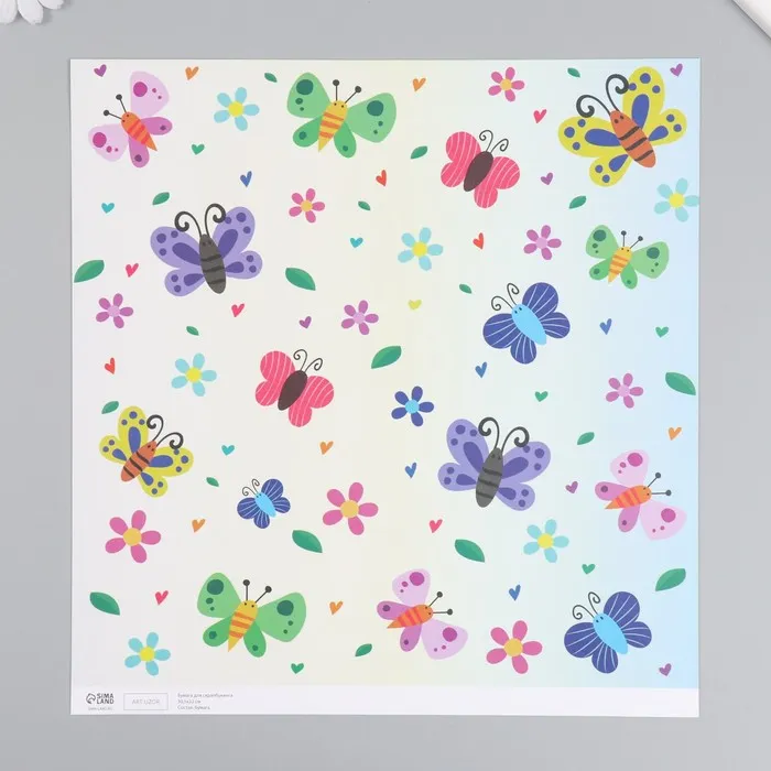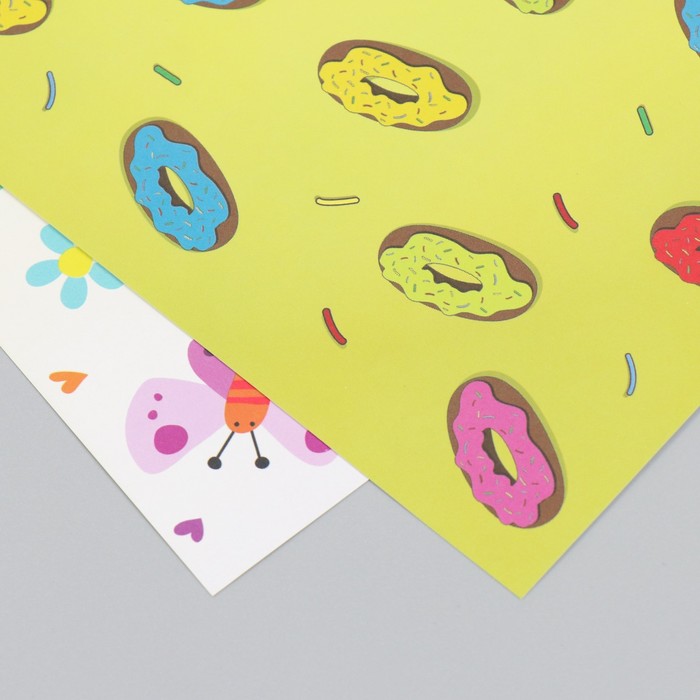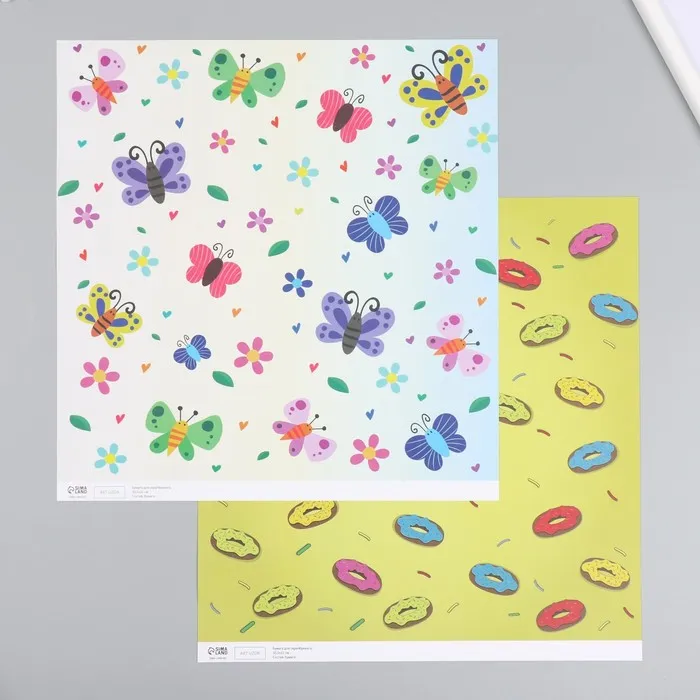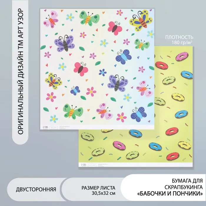 Бумага для скрапбукинга двусторонняя «Бабочки и пончики», плотность 180 г, 30.5×32 см — Характеристики