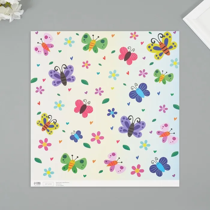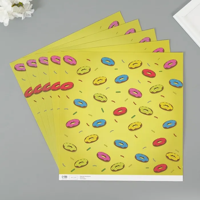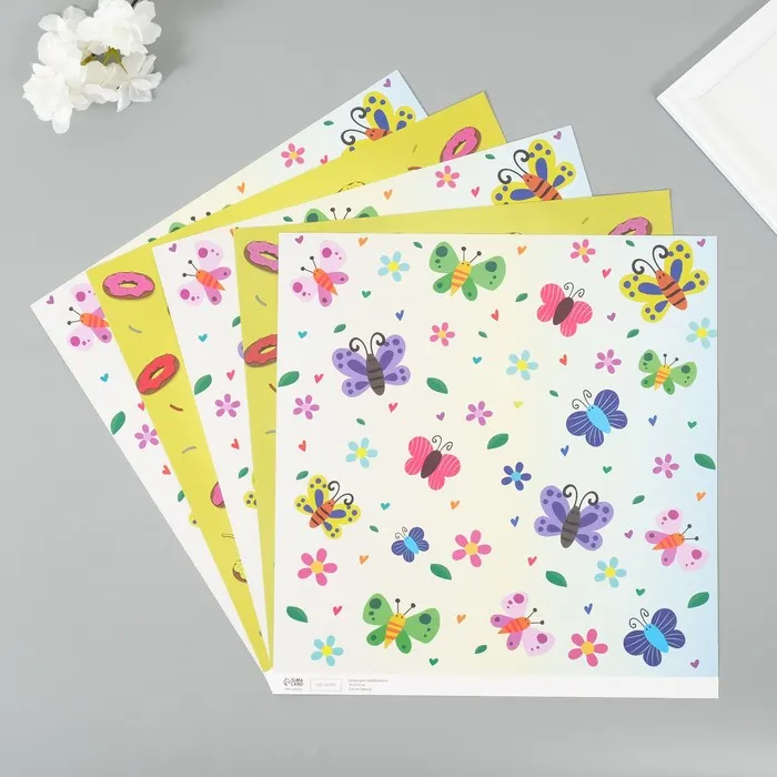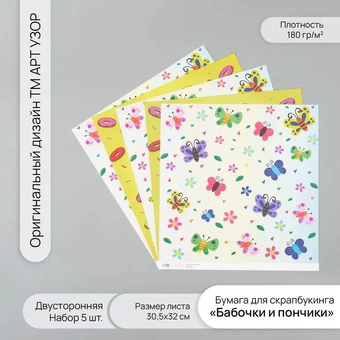 Бумага для скрапбукинга двусторонняя «Бабочки и пончики», плотность 180 г, набор 5 шт., 30.5×32 см — Характеристики