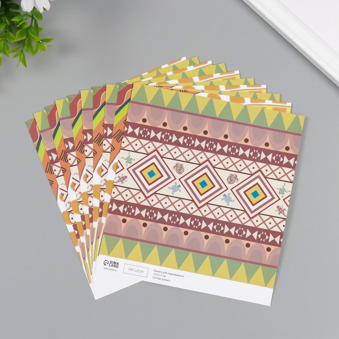 Бумага для скрапбукинга двусторонняя «Этника», плотность 180 г, набор 10 шт., 15.5×17 см — Характеристики