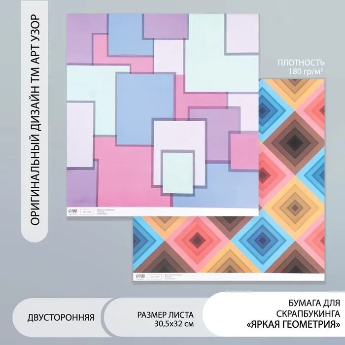 Бумага для скрапбукинга двусторонняя «Яркая геометрия», плотность 180 г, 30.5×32 см — Характеристики