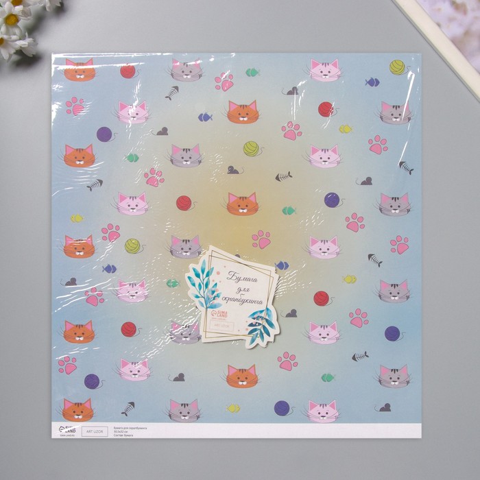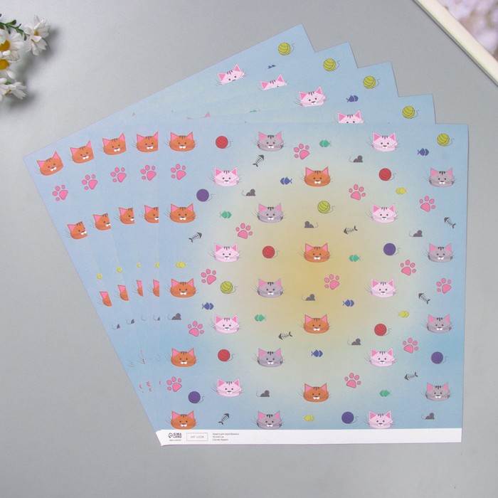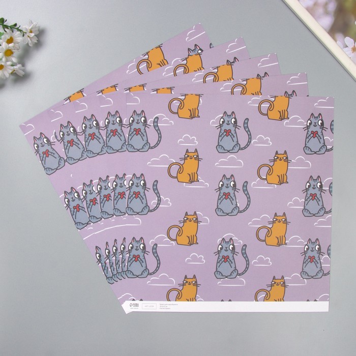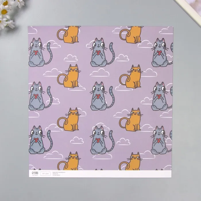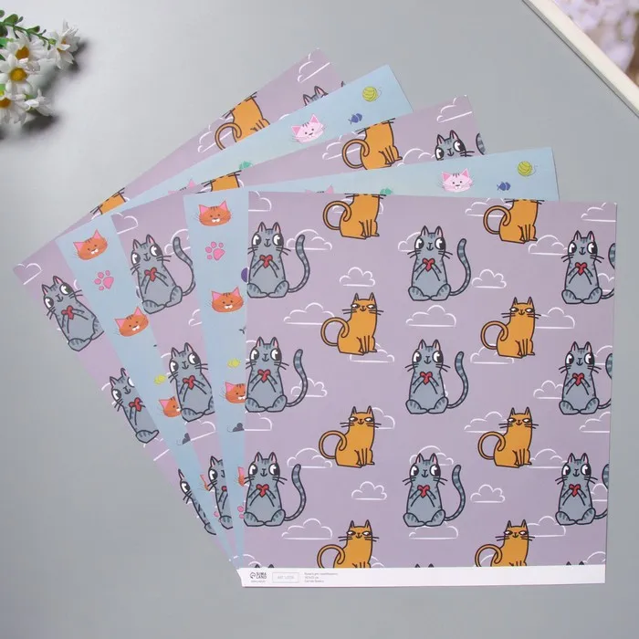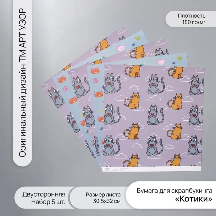 Бумага для скрапбукинга двусторонняя «Котики», плотность 180 г, набор 5 шт., 30.5×32 см — Характеристики