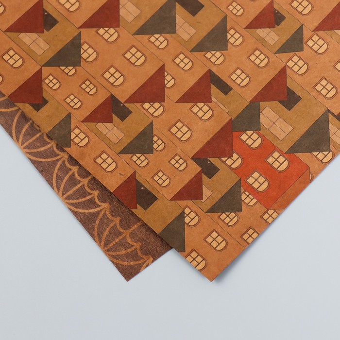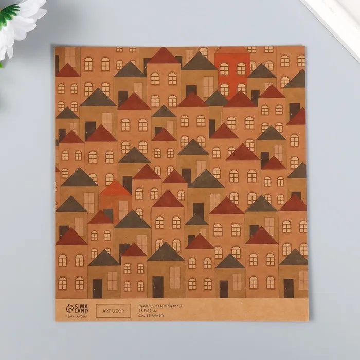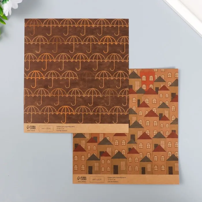 Бумага для скрапбукинга двусторонняя крафт «Домики и зонтики», плотность 180 г, 15.5×17 см — Характеристики