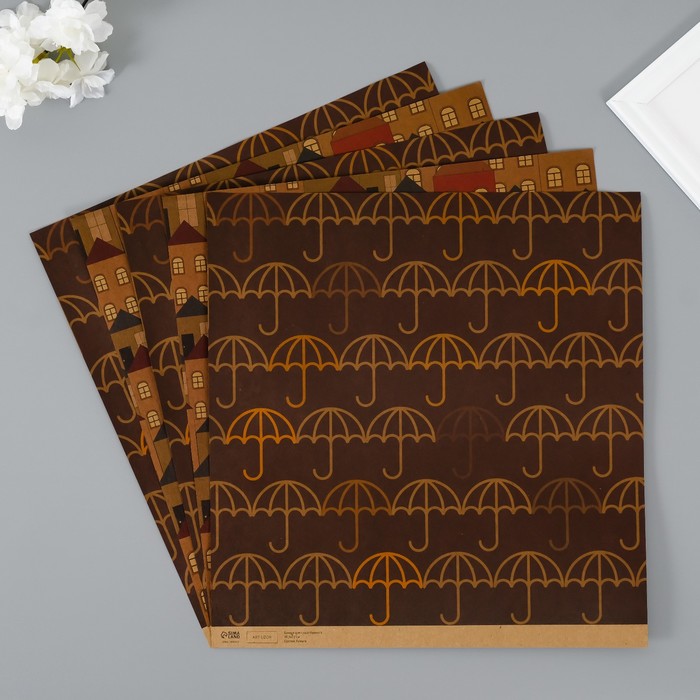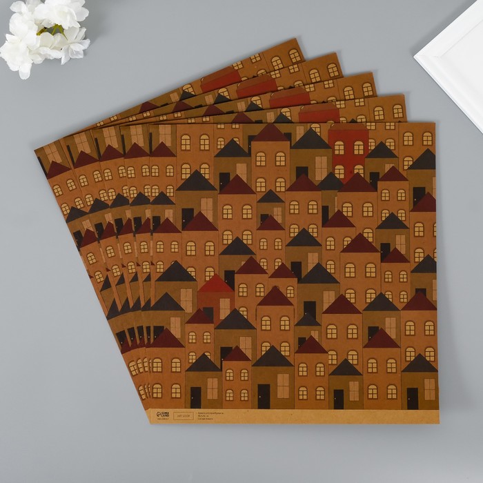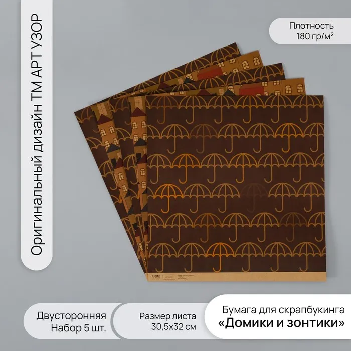 Бумага для скрапбукинга двусторонняя крафт «Домики и зонтики», плотность 180 г, набор 5 шт., 30.5×32 см — Характеристики