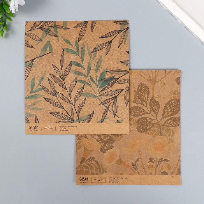 Бумага для скрапбукинга двусторонняя крафт «Флора», плотность 180 г, 15.5×17 см — Характеристики