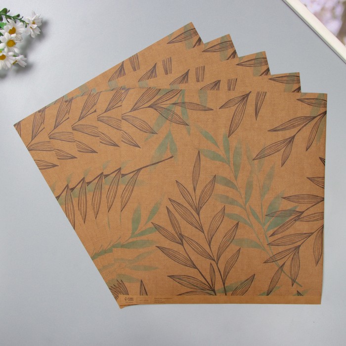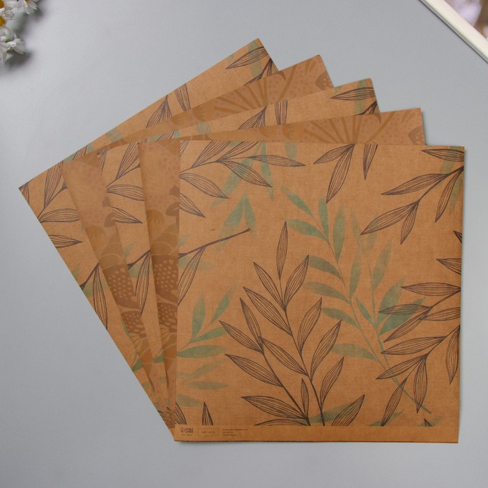 Бумага для скрапбукинга двусторонняя крафт «Флора», плотность 180 г, набор 5 шт., 30.5×32 см — Характеристики
