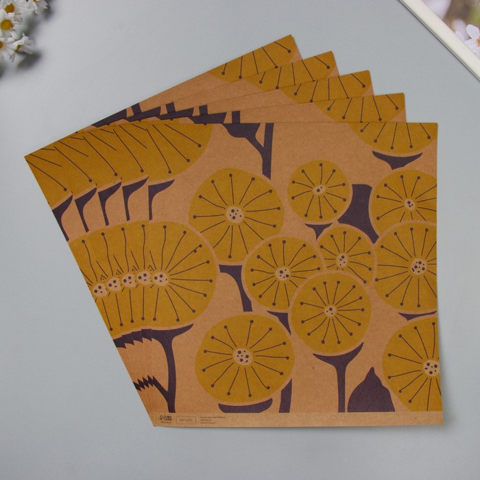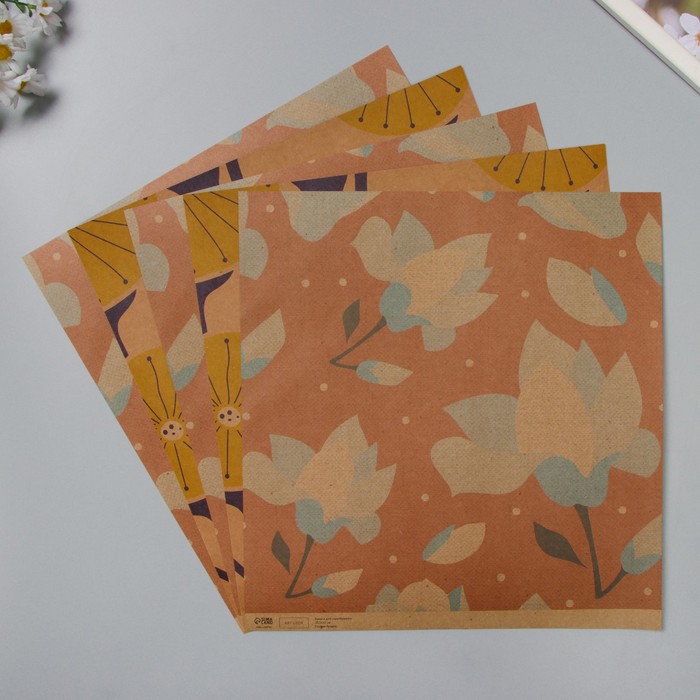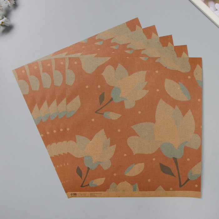 Бумага для скрапбукинга двусторонняя крафт «Цветы», плотность 180 г, набор 5 шт., 30.5×32 см — Характеристики