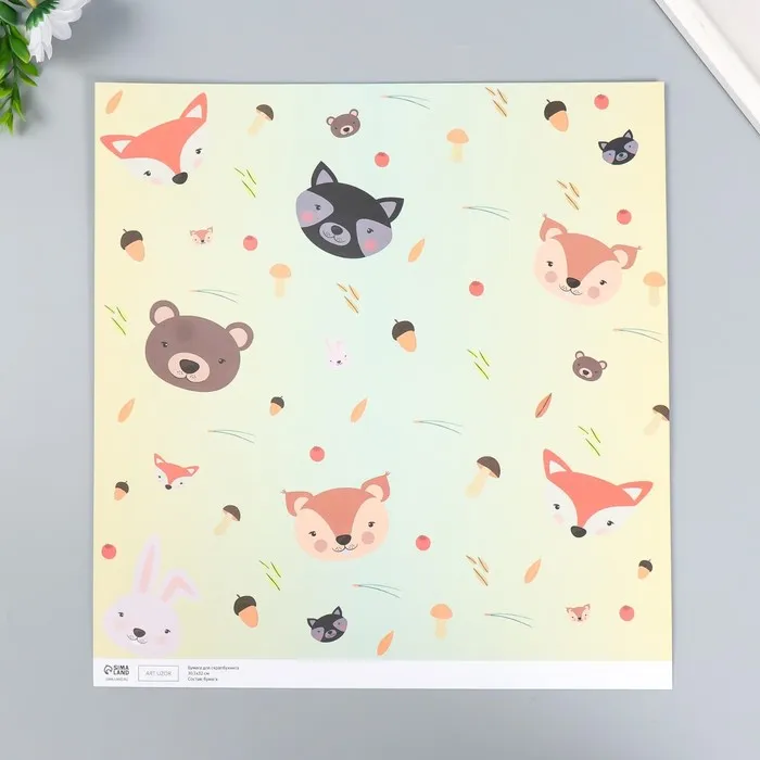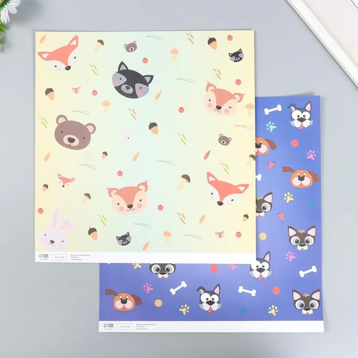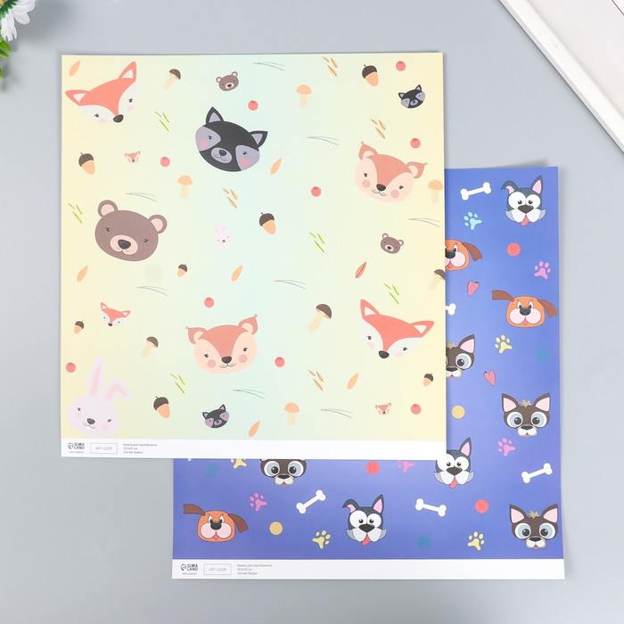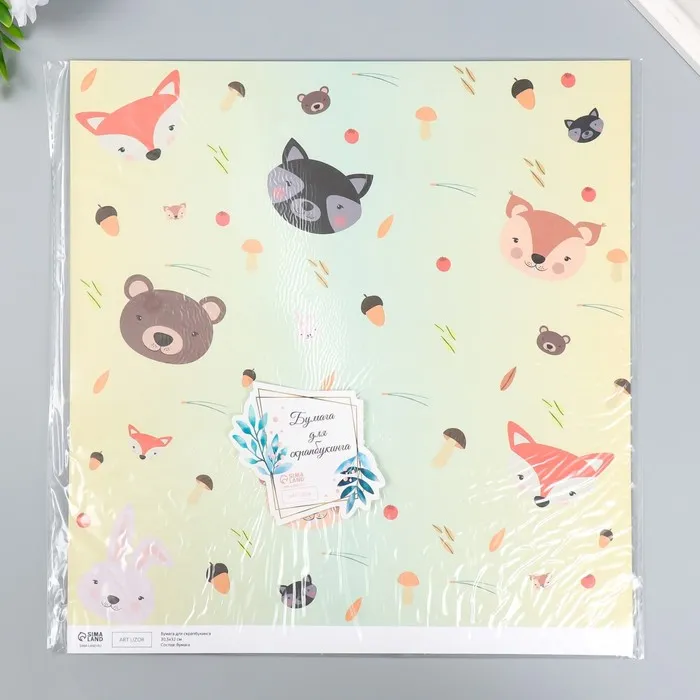Бумага для скрапбукинга двусторонняя «Лесные звери и пёсики», плотность 180 г, 30.5×32 см — Характеристики