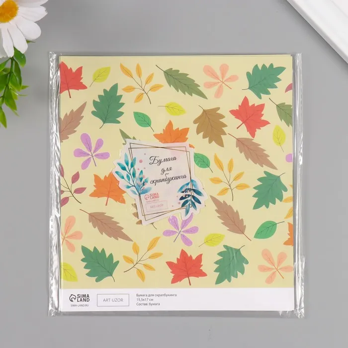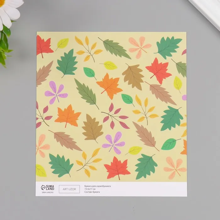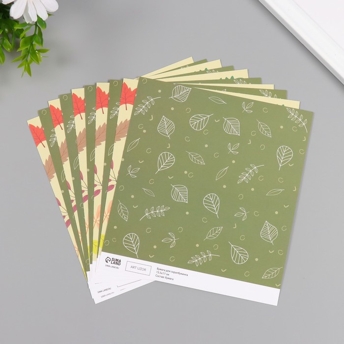 Бумага для скрапбукинга двусторонняя «Листья», плотность 180 г, набор 10 шт., 15.5×17 см — Характеристики