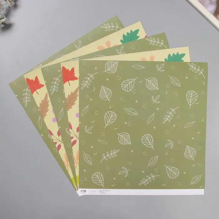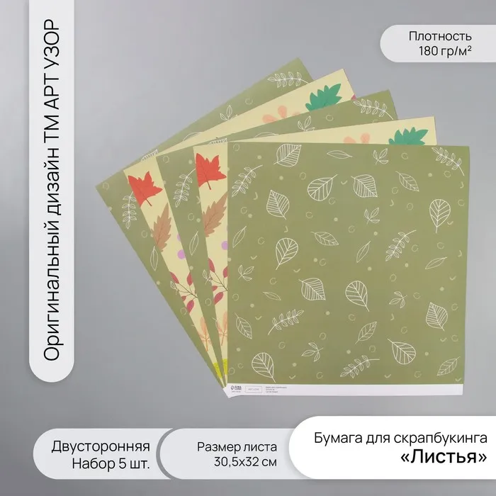 Бумага для скрапбукинга двусторонняя «Листья», плотность 180 г, набор 5 шт., 30.5×32 см — Характеристики