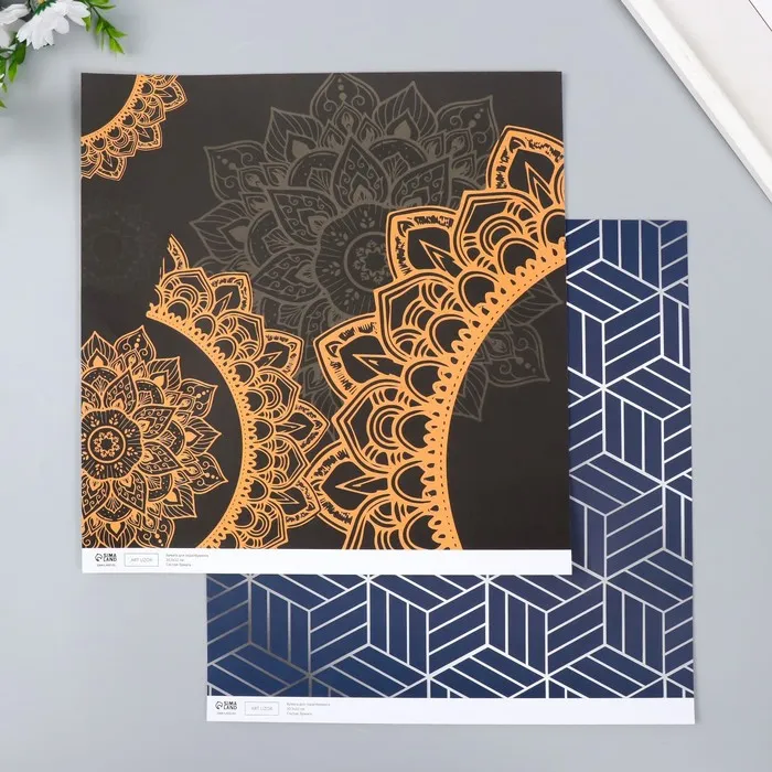Бумага для скрапбукинга двусторонняя «Мехенди и геометрия серебро», плотн 180 г 30.5×32 см — Характеристики
