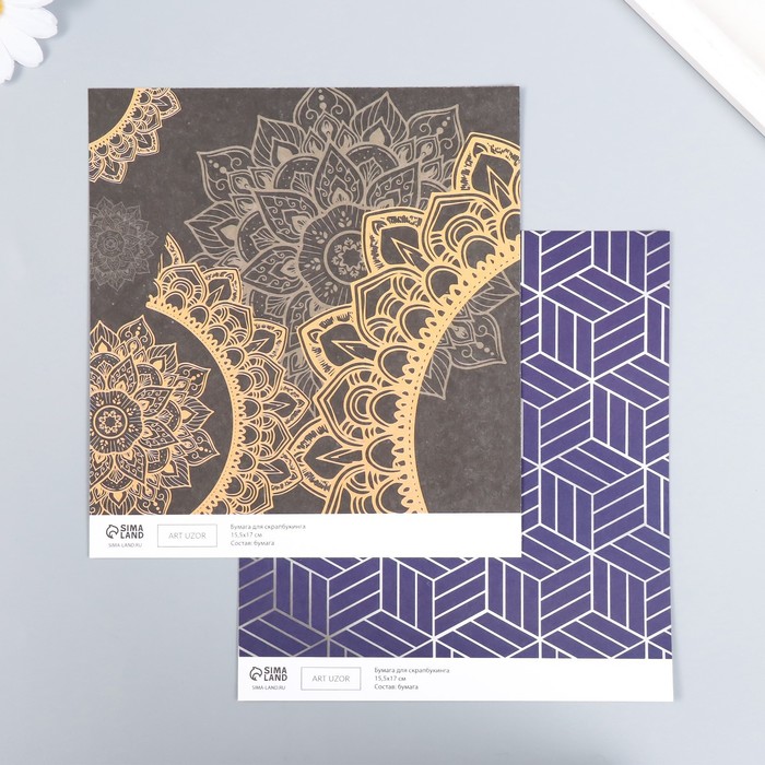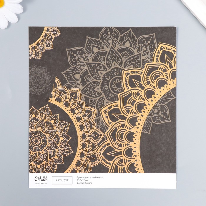Бумага для скрапбукинга двусторонняя «Мехенди и геометрия серебро», плотность 180 г, 15.5×17 см — Характеристики