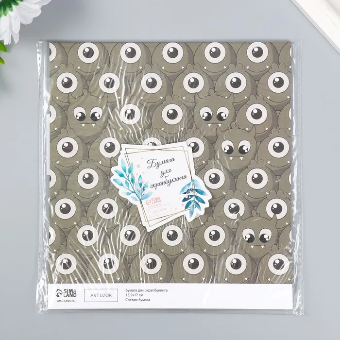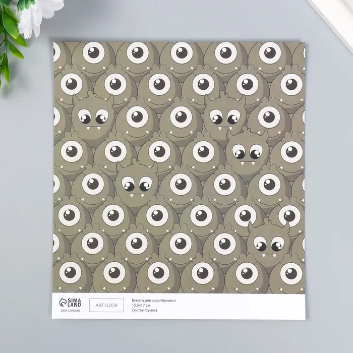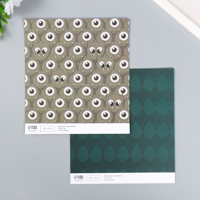 Бумага для скрапбукинга двусторонняя «Монстрики и листья», плотность 180 г, 15.5×17 см — Характеристики