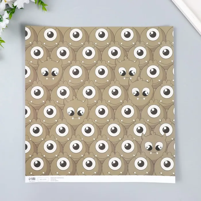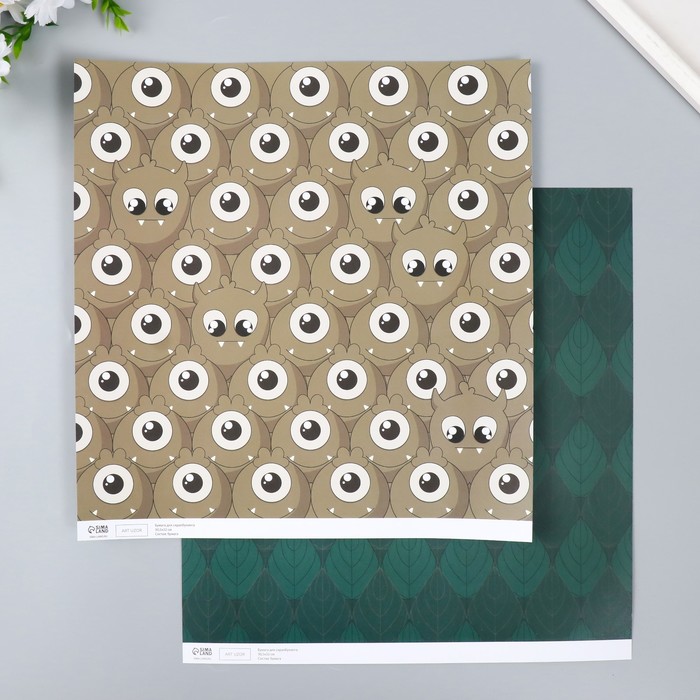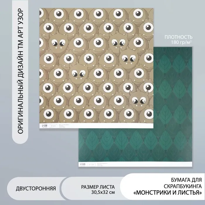 Бумага для скрапбукинга двусторонняя «Монстрики и листья», плотность 180 г, 30.5×32 см — Характеристики