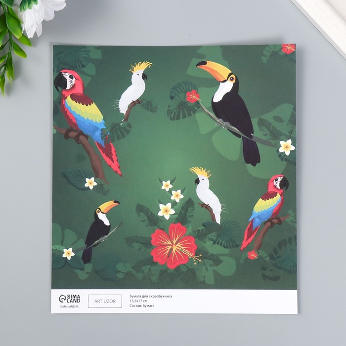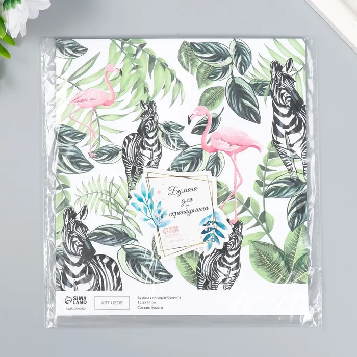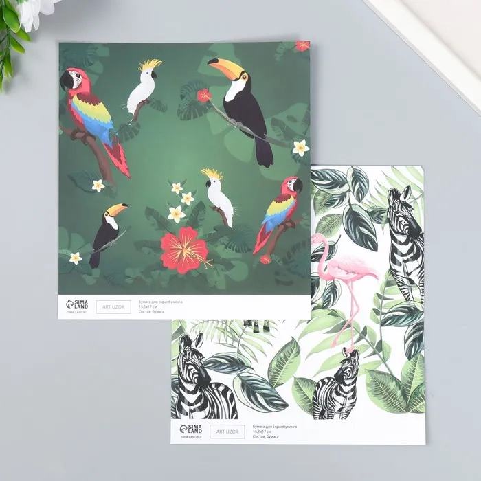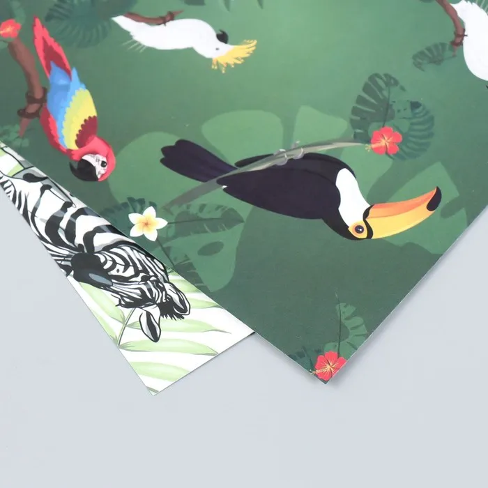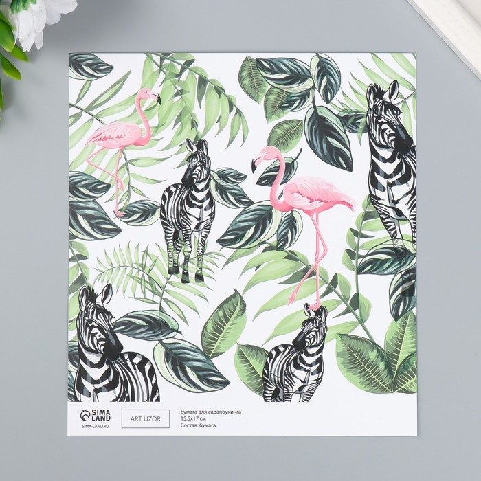 Бумага для скрапбукинга двусторонняя «Попугаи, фламинго и зебры», плотность 180 г, 15.5×17 см — Характеристики